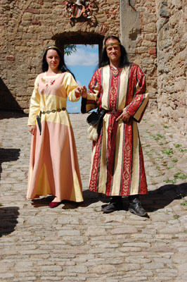 Lady Veronica mit sonnengelben Gewand an der Hand von Sir Galahad